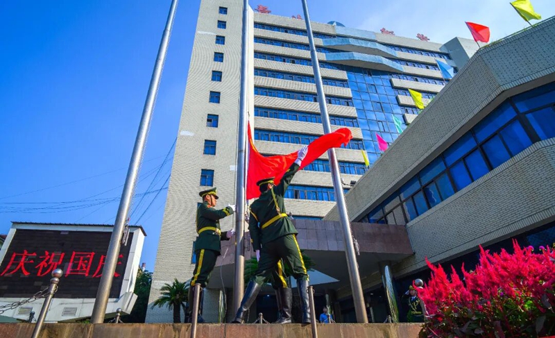 國(guó)慶前夕,青山紙業(yè)在辦公樓前莊嚴(yán)舉行升國(guó)旗儀式。一支由公司退役軍人組成的儀仗隊(duì),護(hù)衛(wèi)著鮮艷的五星紅旗,鏗鏘有力地走向升旗臺(tái),充分展現(xiàn)了軍人特有的優(yōu)良作風(fēng)和昂揚(yáng)斗志。伴隨著雄壯激昂的《義勇軍進(jìn)行曲》,鮮艷的五星紅旗冉冉升起,在蔚藍(lán)的天空下迎風(fēng)飄揚(yáng)。全體人員神情莊重,面向國(guó)旗行注目禮,并高唱國(guó)歌,激昂嘹亮的歌聲,表達(dá)對(duì)祖國(guó)母親最深沉的熱愛(ài)和最真摯的祝福。