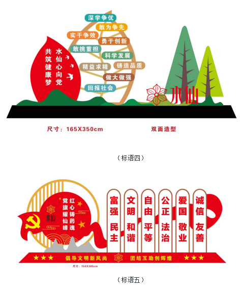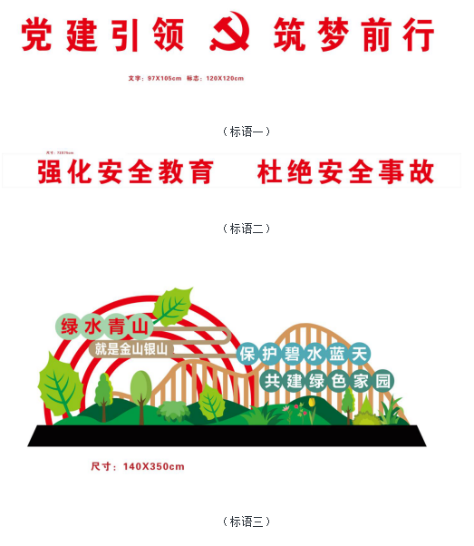 3.3 除黨建宣傳欄外,其余宣傳點(diǎn)設(shè)計(jì)樣式、內(nèi)容已確定,需要確定各個(gè)宣傳點(diǎn)尺寸以及制作安裝(具體樣式、內(nèi)容見(jiàn)附件一)