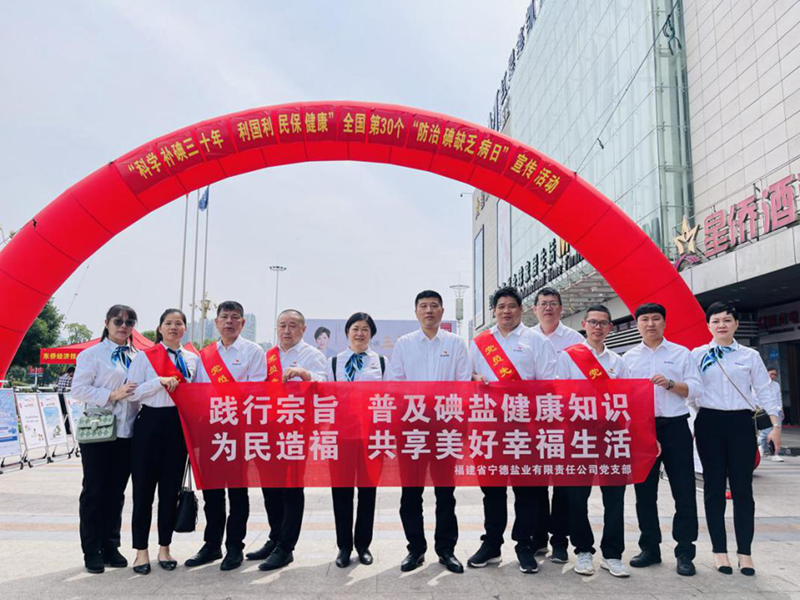 為深入開展學(xué)習(xí)貫徹習(xí)近平新時(shí)代中國(guó)特色社會(huì)主義思想主題教育,牢牢把握主題教育的目標(biāo)要求,在開展5.15“防治碘缺乏病日”宣傳活動(dòng)中,福鹽集團(tuán)黨委充分發(fā)揮各級(jí)黨組織、黨員干部的先鋒作用,積極履行社會(huì)責(zé)任,以“踐行宗旨為民造?!睘橹埸c(diǎn),以開展“我為群眾辦實(shí)事”實(shí)踐活動(dòng)、“黨旗在一線高高飄揚(yáng)”活動(dòng)為結(jié)合點(diǎn),以增強(qiáng)人民群眾獲得感、幸福感、安全感為著力點(diǎn),積極配合省衛(wèi)健委、工信廳、市場(chǎng)監(jiān)督管理局、疾控中心等部門,在寧德市聯(lián)信財(cái)富廣場(chǎng)開展以“科學(xué)補(bǔ)碘三十年,利國(guó)利民保健康”為主題的省級(jí)主會(huì)場(chǎng)宣傳活動(dòng),各地市分會(huì)場(chǎng)積極響應(yīng),現(xiàn)場(chǎng)熱鬧非凡。