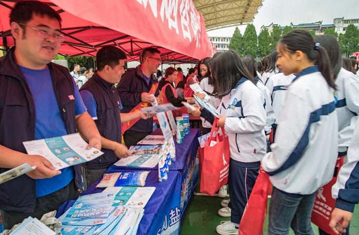 三明鹽業(yè)公司黨員服務(wù)隊(duì)深入學(xué)校開展進(jìn)校園宣傳活動(dòng),黨員服務(wù)隊(duì)耐心細(xì)致地解答師生提出的各種相關(guān)問(wèn)題。通過(guò)小手拉大手的形式,鼓勵(lì)學(xué)生做一個(gè)健康知識(shí)的傳播者,將今天學(xué)到的健康知識(shí)分享給自己的家人、同學(xué)和朋友,讓更多的人了解碘以及碘缺乏病防治知識(shí)。