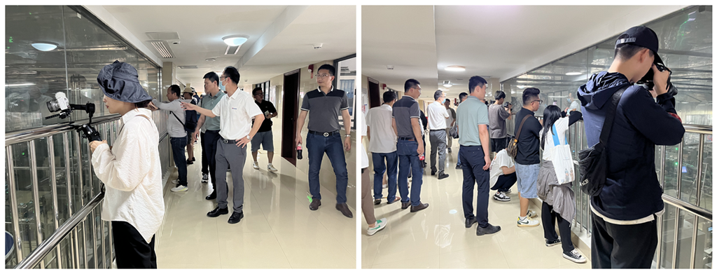 圖為達(dá)人們?cè)谑雏}生產(chǎn)車間參觀通道采集素材