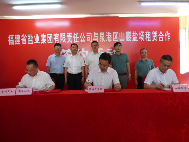 7月13日上午,福鹽集團(tuán)與泉州市泉港區(qū)山腰鹽場(chǎng)在福鹽集團(tuán)權(quán)屬企業(yè)晶海輕化公司舉行經(jīng)營(yíng)合作簽約儀式。泉港區(qū)常務(wù)副區(qū)長(zhǎng)陳劍峰、福鹽集團(tuán)黨委副書記、總經(jīng)理莊燦陽到會(huì)并致辭。山腰街道黨工委等相關(guān)簽約單位的領(lǐng)導(dǎo)出席簽約儀式。