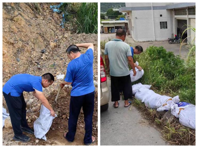 (龍巖鹽業(yè)??涌趥}(cāng)庫(kù)地處下坡低洼路段,此前已發(fā)生多次內(nèi)澇災(zāi)害。面臨此次“杜蘇芮”超強(qiáng)臺(tái)風(fēng)帶來(lái)的強(qiáng)降雨,極可能發(fā)生積水倒灌、浸泡庫(kù)區(qū)。為第一時(shí)間響應(yīng)防汛防臺(tái)部署,龍巖鹽業(yè)突擊隊(duì)隊(duì)員立即組織前往做好排澇準(zhǔn)備,他們緊急自制沙袋,往水溝邊堆疊沙袋;分組對(duì)周?chē)滤_(kāi)展疏通排查,清掏垃圾淤泥,盡最大努力消除隱患。)