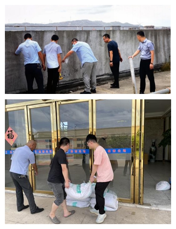 (晶秀輕化黨支部組織防汛防臺(tái)風(fēng)突擊隊(duì)清理屋頂排水溝,準(zhǔn)備物資防御臺(tái)風(fēng)等)