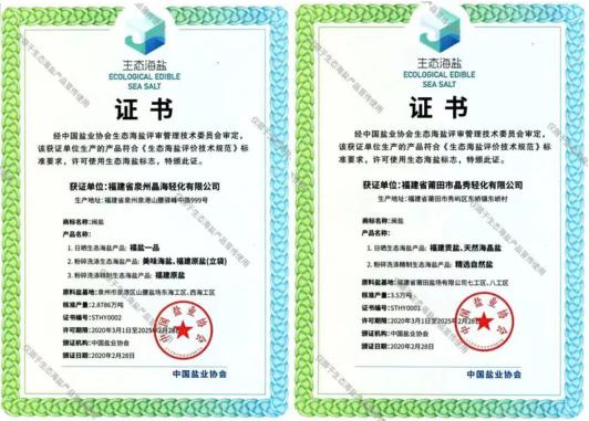 在產(chǎn)品溯源方面,福鹽集團(tuán)以建立產(chǎn)品電子追溯體系為抓手,具有完備的產(chǎn)品質(zhì)量管理體系,建立“一品一碼、一包一碼”的追溯體系,能夠做到來源可追溯、流向可查詢、風(fēng)險(xiǎn)可防范、責(zé)任可追究,產(chǎn)品嚴(yán)格按照國家相關(guān)食鹽標(biāo)準(zhǔn)生產(chǎn),質(zhì)量安全可靠,可以放心購買和食用。食鹽是作為一種特殊食品進(jìn)行管理的,除了適用《中華人民共和國食品安全法》的規(guī)定,還適用《食鹽專營辦法》,并且有嚴(yán)格、完善的標(biāo)準(zhǔn)體系。福鹽集團(tuán)堅(jiān)持夯實(shí)食鹽質(zhì)量安全管理工作,旗下的福建省莆田市晶秀輕化有限公司及福建省泉州晶海輕化有限公司生產(chǎn)的食鹽均是通過《生態(tài)海鹽評價(jià)技術(shù)規(guī)范》標(biāo)準(zhǔn)評審的產(chǎn)品。