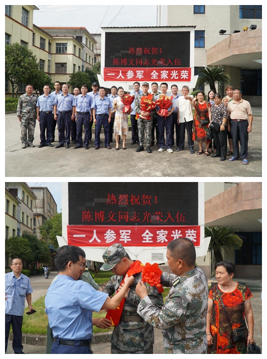 在歡送會上,青山紙業(yè)黨委副書記潘其星為陳博文佩戴綬帶、紅花并勉勵陳博文,要時刻牢記習近平總書記提出的“建設一支聽黨指揮、能打勝仗、作風優(yōu)良的人民軍隊”的總體要求,以優(yōu)良的作風和良好的精神風貌,擔負起一名軍人的神圣職責,在部隊這所大學校中增長才干、保衛(wèi)祖國,努力成為一名合格的軍人。