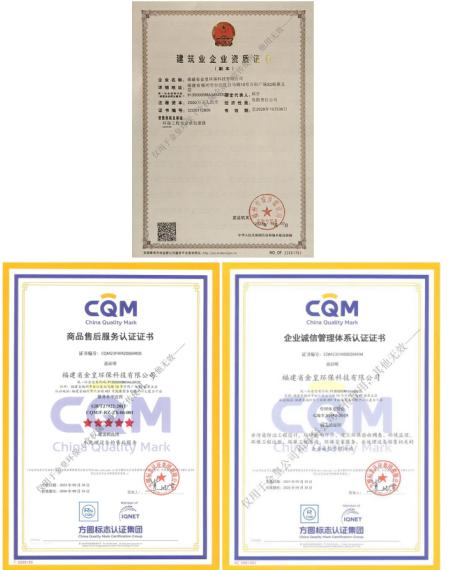 厚積薄發(fā),在資質(zhì)提升中蓄能蛻變。本月,金皇環(huán)保相繼取得企業(yè)誠(chéng)信管理體系認(rèn)證證書(shū)、商品售后服務(wù)認(rèn)證證書(shū)以及重要的環(huán)保工程專業(yè)承包壹級(jí)證書(shū),標(biāo)志著承攬環(huán)保工程的能力得到進(jìn)一步提升。
