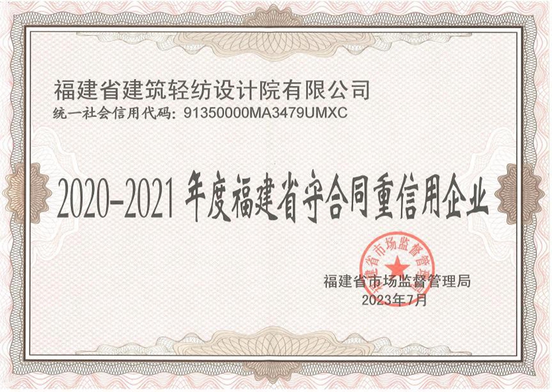 公司榮獲“2020-2021 年度福建省守合同重信用企業(yè)”