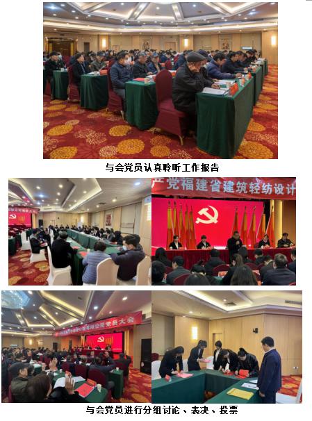 12月27日上午,福建省建筑輕紡設(shè)計(jì)院有限公司召開黨員大會(huì),選舉產(chǎn)生公司新一屆黨委、紀(jì)委委員。福建輕紡黨委委員、副總經(jīng)理陳國(guó)樑,紀(jì)委(監(jiān)察專員辦)綜合室主任、紀(jì)檢監(jiān)察室主任林大宏,黨建工作部主任、人力資源部副總經(jīng)理李亮蒞會(huì)指導(dǎo)。大會(huì)由公司黨委委員、紀(jì)委書記林圩主持,在職和離退休共計(jì)93名黨員出席會(huì)議。