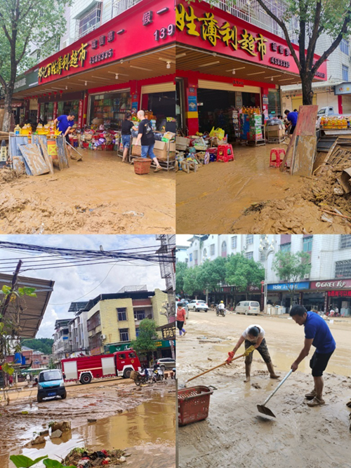 17日晨,隨著洪水逐漸退去,大量淤泥、垃圾聚集,鄉(xiāng)鎮(zhèn)街道兩旁的沿街店鋪滿目狼藉,商戶們忙于轉(zhuǎn)移物資、清理積水和淤泥。此次災(zāi)情導(dǎo)致龍巖鹽業(yè)多個客戶的店鋪被淹,鹽產(chǎn)品等物資財產(chǎn)受到較大程度損失。