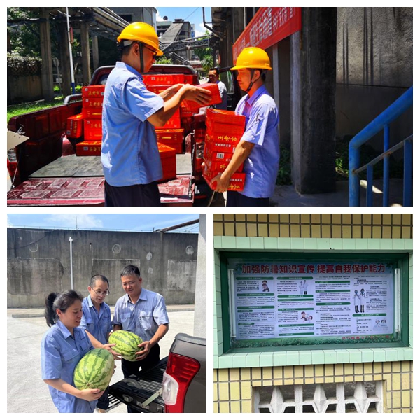 各分工會為一線職工送上西瓜、藿香正氣水等防暑降溫物品的同時,在分廠的宣傳欄以及工作群積極開展防暑降溫常識的宣傳,為高溫下堅守崗位的職工送去了工會“娘家人”的關懷。