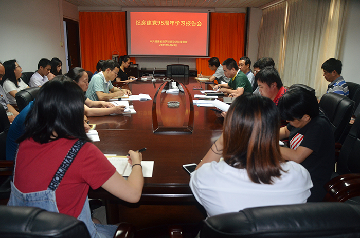 6月28日,省建筑輕紡設(shè)計(jì)院黨委組織召開慶祝建黨98周年學(xué)習(xí)報(bào)告會(huì)。