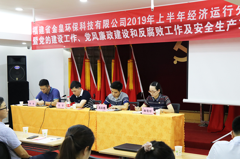 8月2日,金皇環(huán)保2019年上半年經(jīng)濟運行分析會暨黨的建設(shè)工作、黨風廉政建設(shè)和反腐敗工作及安全生產(chǎn)工作會在金皇大廈四樓召開。