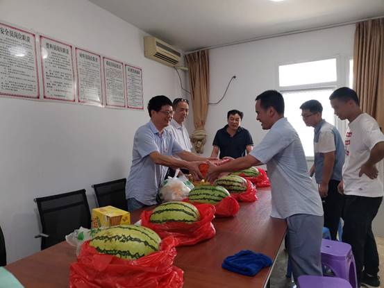 2020年7月23日下午,黨委委員、副總經(jīng)理、工會主席陳友立一行6人,前往第五分公司三明鹽業(yè)倉儲物流中心項目工地慰問高溫下堅持工作的員工,送去防暑藥品和清涼飲料。