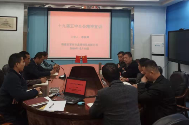 12月18日下午,福建省莆田市晶秀輕化有限公司在公司會議室舉行學(xué)習(xí)宣傳貫徹黨的十九屆五中全會精神宣講會。福建省鹽業(yè)集團(tuán)公司黨委委員、總會計師郭俊卿同志作主題宣講