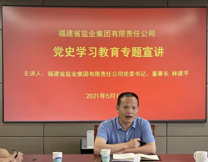 5月17日下午,福建省鹽業(yè)集團有限責任公司黨委書記、董事長林建平在公司八樓會議室作黨史學習教育專題宣講,公司中層以上干部、黨員、入黨積極分子等共36人參加。