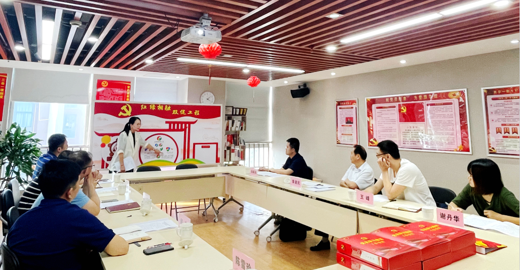 黃建民組長一行聽取了金皇環(huán)保公司黨總支書記邱宇關于黨史學習教育工作情況的匯報,聽取黨總支委員陳雪珍介紹“紅綠相融雙促工程”黨建品牌創(chuàng)建情況,并與與會人員深入交流,全面了解公司黨史學習教育工作開展情況。