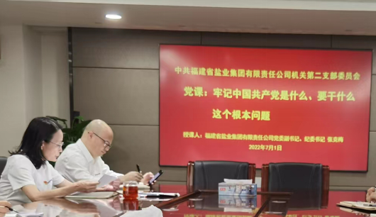 為慶祝中國共產(chǎn)黨成立101周年,喜迎黨的二十大勝利召開,激勵(lì)和號(hào)召全體黨員進(jìn)一步堅(jiān)定信念、牢記使命、奮勇爭先。7月1日,省鹽業(yè)集團(tuán)公司機(jī)關(guān)二支部組織慶“七一”主題黨日活動(dòng),此次主題黨日活動(dòng)共分三個(gè)環(huán)節(jié)。